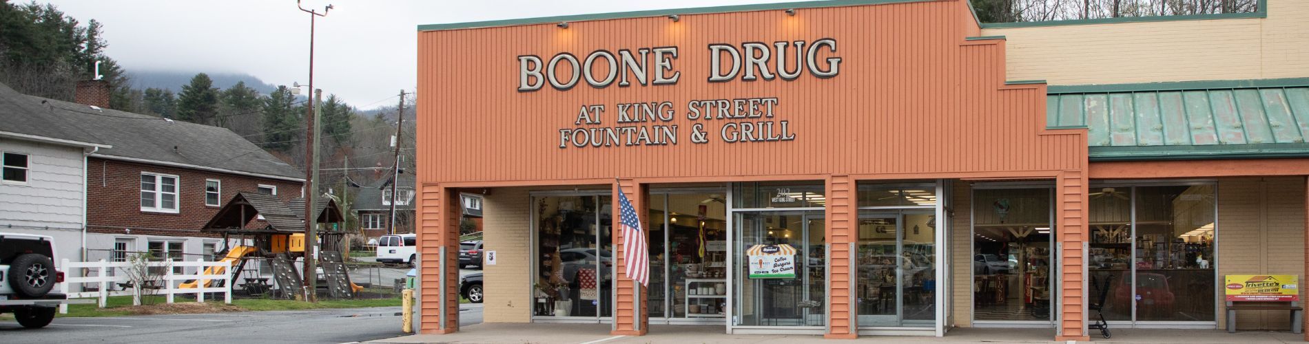 Boone Drug at King Street, first opened in 1966, offers a full service pharmacy, a large gift selection (such as Home Decor, Baby, and Student gifts), healthcare items, and a soda fountain and grill reminiscent of the time of its opening. Like all of the Boone Drug stores, King Street offers the highest quality pharmaceutical products and services. Unlike the other stores, King Street has a convenient drive-thru window!